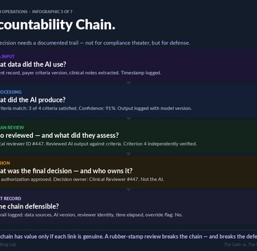 Consequence: A single high-profile AI denial error generates regulatory exposure that cannot be defended — because the accountability chain was never built. This failure mode typically results in program suspension or shutdown.